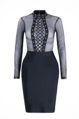 **50% OFF** 'Serena' Black Long Sleeve Fishnet Bandage Dress
