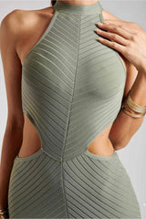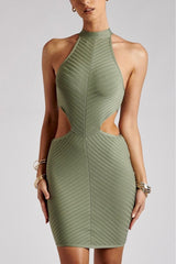 ‘Neveah’ Turquoise Cut Out Halter Mini Bandage Dress
