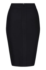 You’ll wear it again and again, getting your money’s worth in no time! The 'Nyla' black bandage skirt is perfect for the boardroom or on a nice date. The thick, tight material hugs your curves, and allows you to feel your best while looking your best. The just above the knee length and figure-hugging material make it the perfect versatile piece of clothing to wear. Choose between classic black, classy red wine, sexy nude, cutesy mustard or one of our fierce metallic's. No matter the colour you choose you will always feel your best. Check our size chart for your perfect fit!